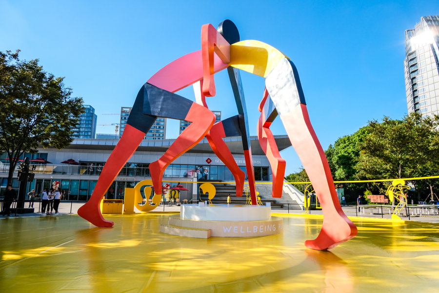 图为上海西岸艺术地标星美术馆变身限时“游乐场”,通过运动和对话,邀请公众探索好状态意涵。